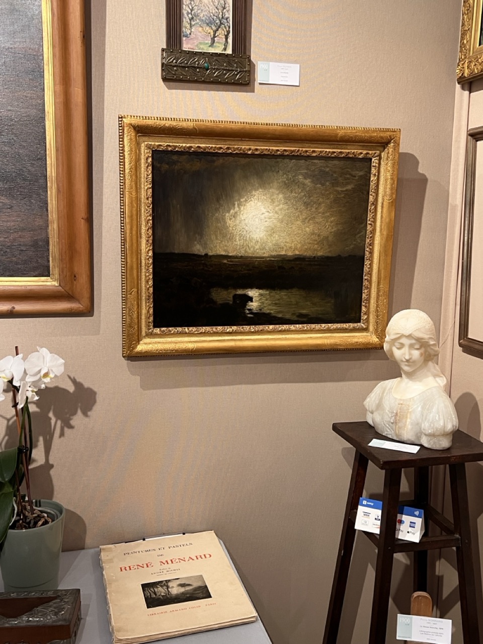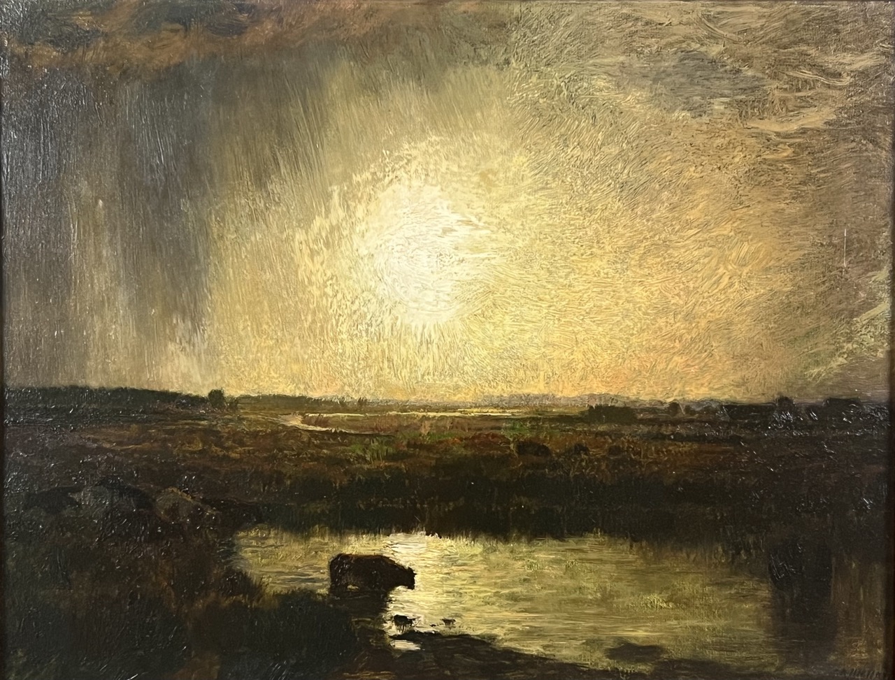 Avec Lucien Simon, Charles Cottet, André Dauchez et René-Xavier Prinet, Émile René Ménard fait partie d’un groupe d’artistes que la critique d’art a désignés sous le terme de « Bande noire » en raison de leur utilisation privilégiée de couleurs sombres. Ce tableau illustre à ce titre la maîtrise d’Émile René Ménard des clairs-obscurs, la lumière irradiante du coucher de soleil contrastant avec les teintes sourdes du paysage, subtilement rehaussées par quelques touches de vert.